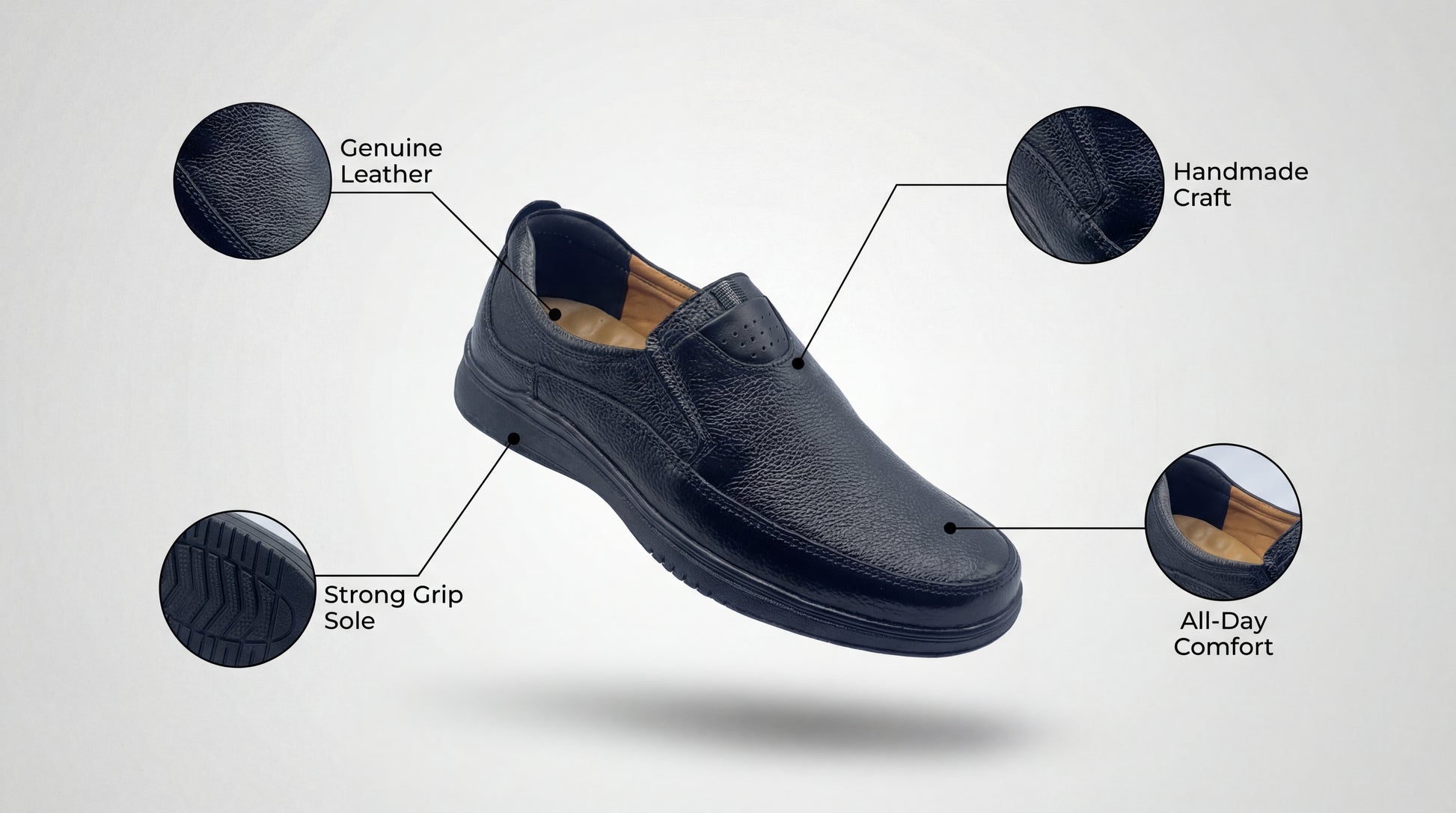 Premium Grained Leather: High-quality textured leather upper that is scratch-resistant and maintains its luster over time.